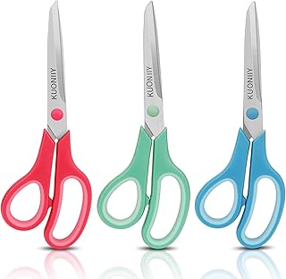 KUONIIY Ciseaux,Lame Recouverte de Titane Ultra-tranchante, Manche Douce et Confortable, Ciseaux à Multi-usages, Lot de 3 Paires, 20,3 cm, Rouge, Vert, Bleu