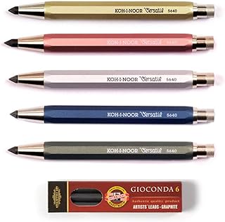 Koh-I-Noor Porte-mine Automatic en métal avec Taille-mines No. 5640 Sets différents, mine 5.6 mm Gold+Silber+Rosa+Blau+Grün+Minen
