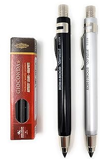 Lot de 2 Koh-I-Noor 5900 Porte-mine mécanique Diamtre 2mm - Noir + 12 Mines en graphite pour porte-mine 2B Diamètre 2 mm 120 mm