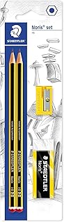 Staedtler Noris 120, Crayons à papier HB extrêmement résistants, Idéal pour le dessin et les esquisses, Étui blister avec 2 crayons HB, 1 gomme de taille standard et 1 taille-crayon, 120 SBK-1