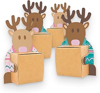 itenga Lot de 4 cartes de Noël à poser, 4 boîtes cadeau, 4 cubes marron, 4 cartes de vœux, 4 cartes de vœux, 4 cartes de vœux, 4 cartes de vœux, marron, turquoise, rose pastel