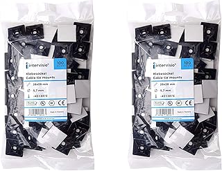 intervisio 100 Pièces Embases Adhesive pour Attache de Cable, 19mm x 19 mm, Noir, Serre-Câbles Auto Adhésif, Support de Serre Câble Plastique, Embase pour Collier de Serrage