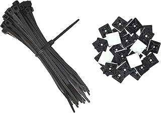 intervisio Collier de Serrage 200 mm x 2,5 mm, Serre Cables, Rilsan 200mm, Nylon, Lot de 100 Pièces + Embases Adhesive pour Attache de Cable, 19 mm, Auto Adhésif 50 Pièces Noir