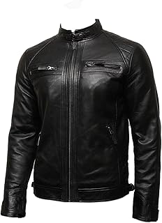 Juicy Trendz®Homme Moto Motard Veste en Cuir Veritable Biker Leather Jacket