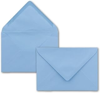 Gustav Neuser - Lot de 50 enveloppes DIN C6 - Bleu clair - 114 x 162 mm - 90 g/m² - Fermeture à rabat à coller en mouillant - Entièrement teintées
