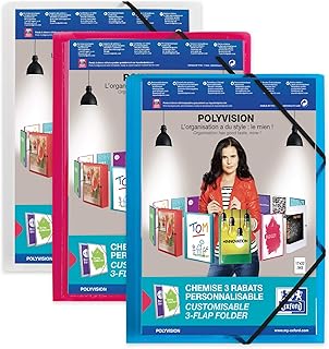 OXFORD Chemise 3 Rabats Polyvision 17 x 22 cm avec Elastique Couverture Polypro Translucide Coloris Assortis